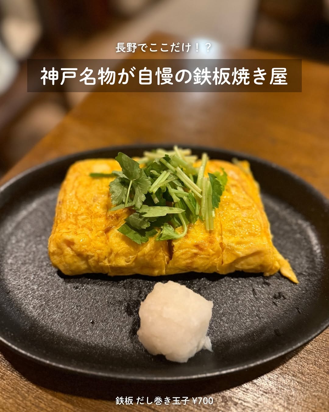 くるくると巻いていく鉄板焼き屋ならではのだし巻き玉子!